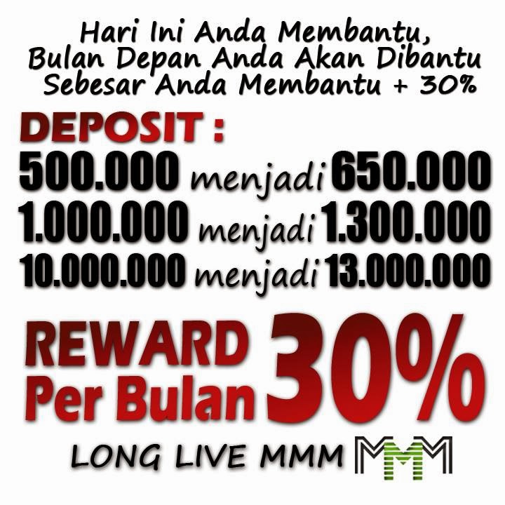 Anda harus mengetahui fakta ini, bahwa 30% dan bonus yang akan diberikan kepada anda akan membuat deposit Anda meningkat menjadi 23,3 kali lebih besar setiap tahunnya!!! Batas deposit uang yang telah ditentukan untuk setiap anggota tidak lebih dari Rp. 10.000.000,00.
